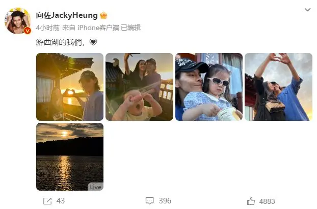 向佐又秀恩爱了!自从郭碧婷带着两个孩子来到杭州后,一家人经常被网友偶遇。8月20日,向佐晒出了与郭碧婷游西湖的画面,儿子向笙(小龙眼)正脸照首次曝光,引发广泛热议。
