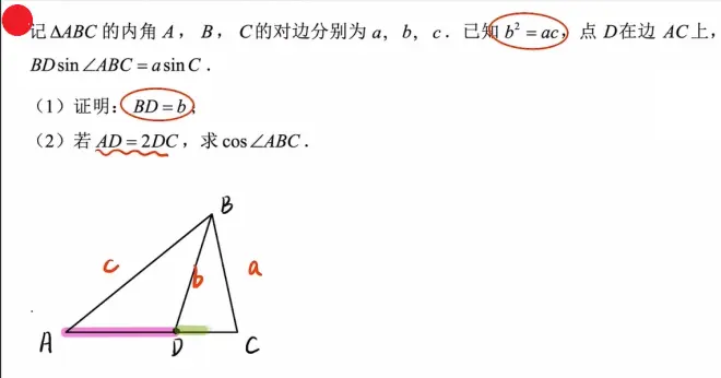 i 怎么才能联系到互补的∠ADC和∠BDC,涉及两个角,利用正弦定理