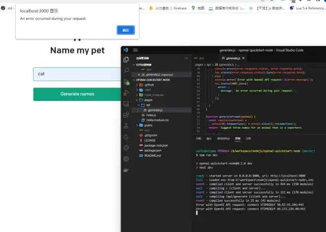 为了确定是否为在下使用的技术栈的问题,在下分别尝试了官方的nodejs项目,和自己用普通的post请求发请求到api,均返回socket超时(是否科学上网情况下均尝试过,结果相同)