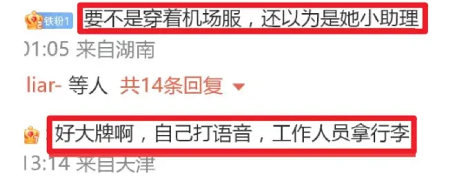 气场过于强硬,才要求工作人员帮她拿行李。