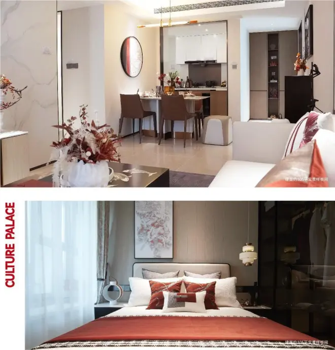 建面约105㎡宽境三居配置约22.8㎡一体化餐客厅,盛载全家人的温情陪伴;约6.3m阔景双联阳台,让生活与诗意兼得;约19㎡主卧套房配备270°转角飘窗、专属衣帽间与独立卫浴,满足主人起居的私密性与舒适感。