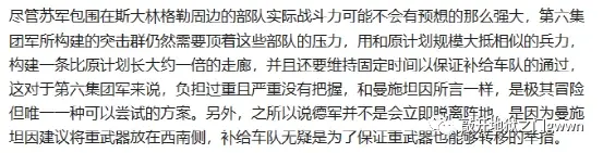 这段话呢,首先能说明对面的朋友的似乎就没有仔细看过我对于TIk视频的分析呢,该文的作者引用的是曼施坦因12月19日晚上18:00向保卢斯和第四装甲集团军发去的电报,但是12月19日 18:50,曼施坦因再次向保卢斯发去急电。而当然我知道会有人要么试图(非该文作者)将18:00的电报和18:50的电报混为一谈,或者直接说18:50的电报不存在。但是我恰恰有证据从侧面作证哪一篇才是曼施坦因真正跟保卢斯单独发出呼吁的电报,