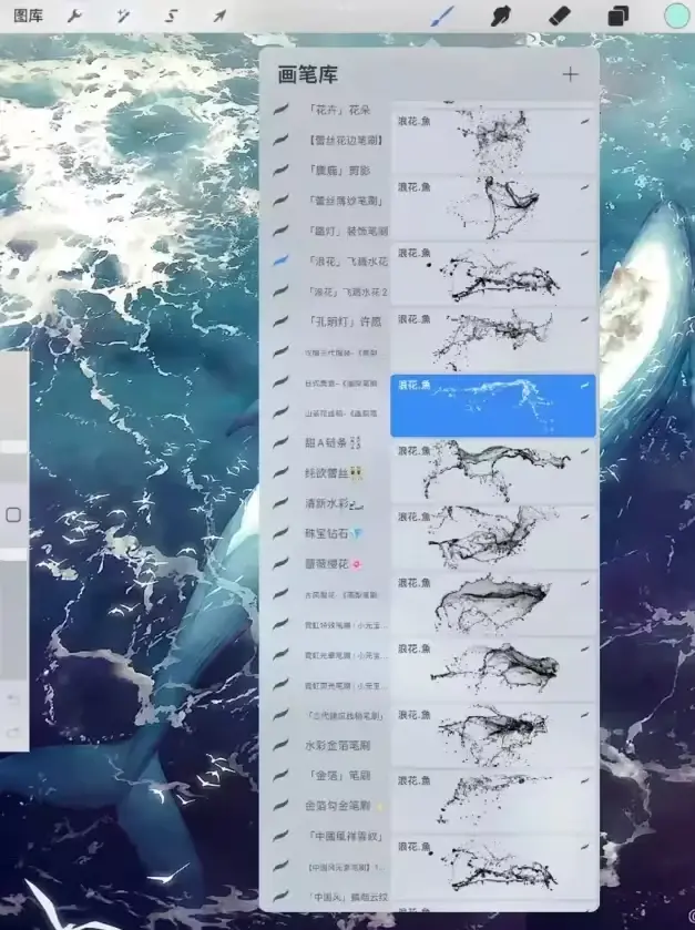 【procreate/ps/sai/csp笔刷】浪花一朵朵的水波笔刷