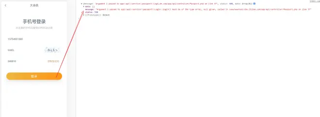 P114--> 手机验证码登录 加不加platform 都 返回 500 提示什么第一个参数得为数组 ,这是什么原因呢
