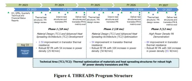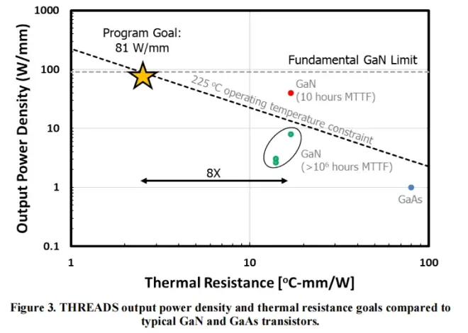 如今,射频系统的工作远远低于电子容量的极限,这仅仅是因为作为射频放大器基本组成部分的晶体管变得过热。THREADS采用新的材料和方法来扩散降低性能和任务寿命的热量,以晶体管级别的热管理挑战为目标。这项工作的核心将是在不降低性能或增加晶体管占地面积的情况下降低散热所涉及的热阻,这是提高雷达能力的关键。为此,THREADS在克服热极限方面的工作可以帮助实现在基本电子极限附近工作的高功率密度晶体管,从而在放大RF输出功率方面达到新的水平。