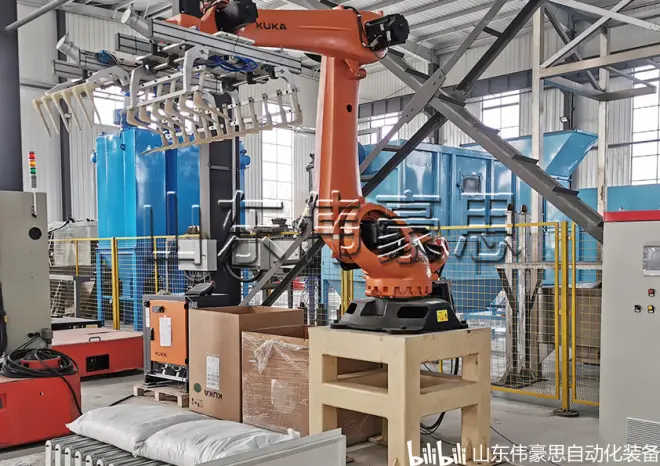 山东伟豪思主营:拆包机器人、吨包拆包机、管链输送机、桁架装车设备(集装箱、平板、高栏车)、自动拆包卸料站、机械手码垛设备、自动拆垛机、自动包装码垛线、自动装箱码垛系统、自动搬运机器人及自动化生产线的非标定制。