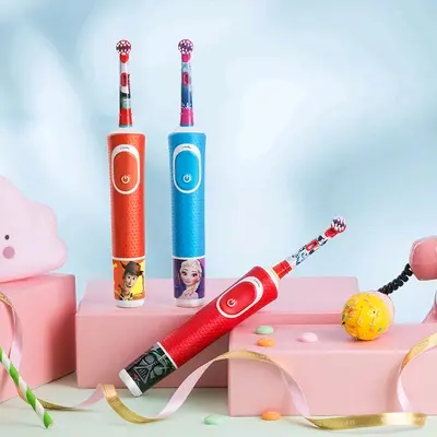 Oral-B是一个牙刷和其他牙齿护理产品(如牙线)品牌,它是宝洁公司在2005年收购吉列公司后推出的。该品牌提供电动牙刷和牙间产品(如冲牙机和口腔护理组合)。其中,Oral-B D100kid是一款具有品牌特色的儿童电动牙刷,注重设计,外观出色且易于辨识。它的外观采用了迪士尼卡通形象,尺寸适中,方便孩子握持操作。D100kid的制造工艺良好,并附赠一些小礼品,如贴纸和彩笔,价格也相对适中。
