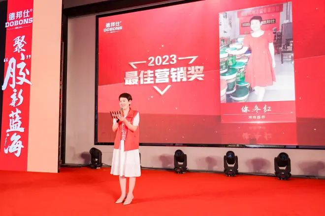 为了更好地传递德邦仕精神理念、鼓励敢于拼搏奋进的德邦仕代理商。会上,德邦仕隆重举行了 2023 年度德邦仕代理商最佳管理奖、最佳营销奖、最佳新锐奖、最佳飞跃奖、感动德邦仕十大代理商颁奖仪式。并邀请代理商发表获奖感言,极大地鼓舞着台下代理商想要加快发展的士气。