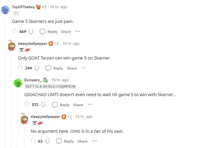 在赛后,无论是赛评人、粉丝还是观众,都对TES感到惋惜,而国外观众也是在Reddit上对这场比赛展开评价。