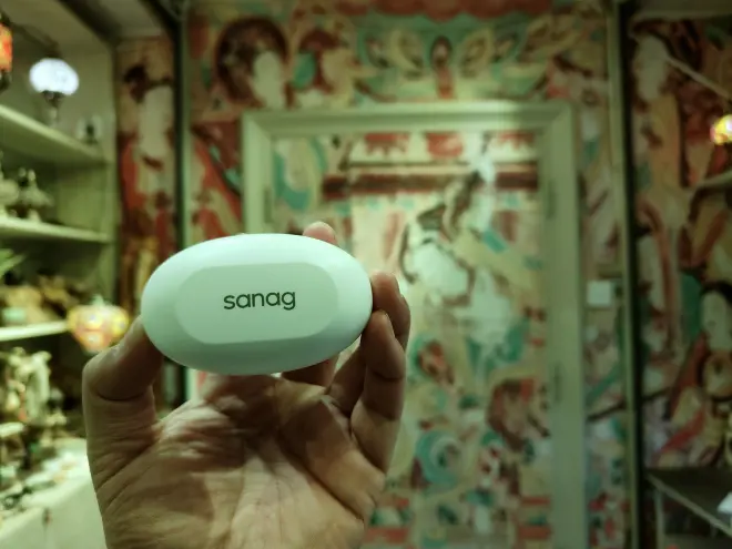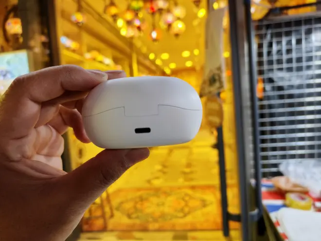 sanag塞那Z50S Pro Max的充电仓小巧可爱,外形蛮有特色,正面有sanag塞那的LOGO,背面是Type-C的充电口,正面还有充电指示灯。