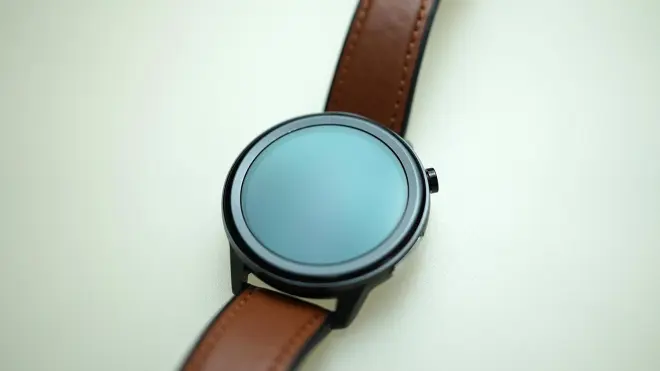 在打开包装的时候,E55S的感觉更像是一个机械手表,黑色磨砂的表圈看起来非常精致,在手表右侧设计了一枚物理按键,一枚物理按键肯定无法实现表的功能,实际E55S采用了1.32寸的触摸屏幕,分辨率有320*320。