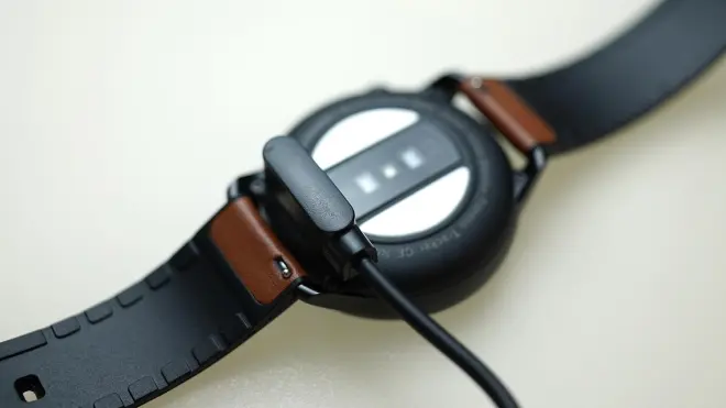 提到充电,E55S采用的是磁吸式充电,使用附赠的磁吸充电线一头接USB-A口,一头磁吸在手表上即可。这么设计更多的是为了保证E55S的防水效果,E55S支持IP68级防水,除了健康监测外,还可以适应多种运动检测,比如涉水较重的游泳运动也不在话下。