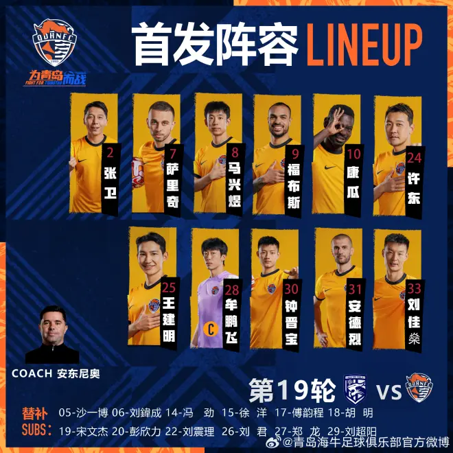 7月30日19:35,在2023赛季中超第19轮的一场重要比赛中,卫冕冠军武汉三镇坐镇武汉体育中心体育场,迎战升班马青岛海牛。赛前,两队首发名单公布。