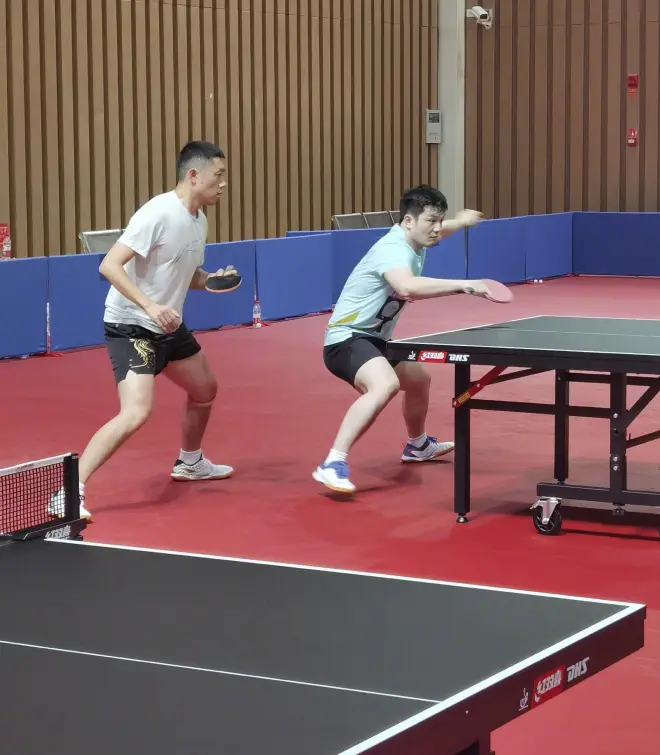 好久不见的许昕与樊振东一起配合双打。他们俩将一起代表上海地产集团参加乒超联赛。乒超联赛第一盘就是双打比赛,对阵双方谁能拿下双打,可以说就一只脚踏入了胜利的大门。所以擅长双打的许昕在上海地产集团的位置还是非常重要的。