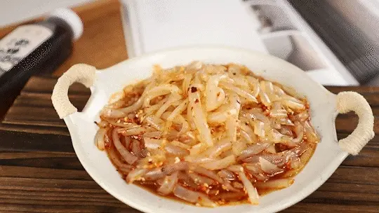 口感爽滑又劲道,风味全凭个人喜好,演示的是最基础的咸口调味,加了醋和辣,开胃又得劲。大家可以再加些配菜,比如榨菜、黄瓜丝,会更美味。