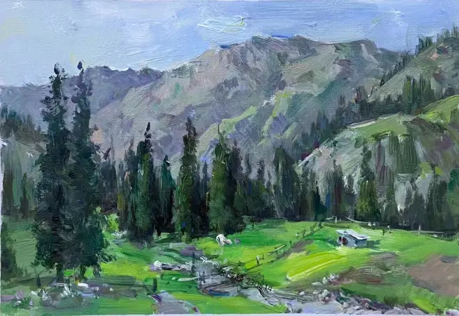 远山的色域和内容选择:在相对冷弱的窄色域中去呈现远山的内容是值得推敲的,因为这是比较具有挑战性的。我们需要小心处理色彩和光线,使其在整体画面中保持平衡和和谐。