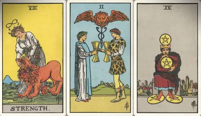 卜牌:力量+ 圣杯二+ 星币四+