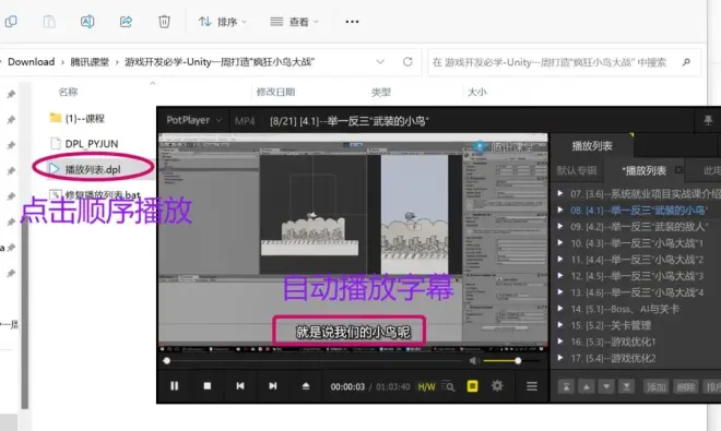 最后可以在软件安装目录下的 Download 中找到下载的课程文件,支持用potplayer播放器顺序播放,方便高效学习。
