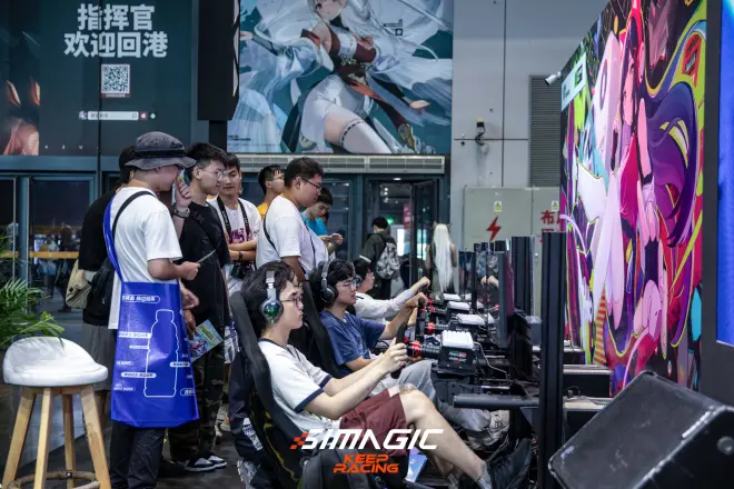 逼真的观众挑战赛车驾驶,并在社交媒体上分享动态,驾驶体验让SIMAGIC体验区成为展览的热点。