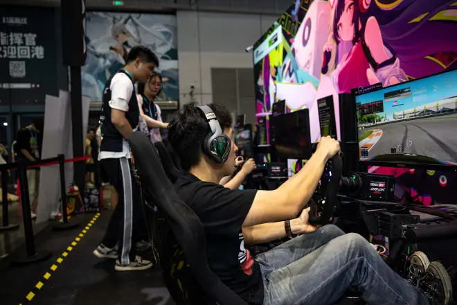 同一时间专属二次元文化爱好者和游戏玩家们的大型线下嘉年华Bilibili World 2023(以下简称BW 2023),在上海国家会展中心举行,吸引了多家硬件及数码电竞厂商入驻。在国内著名的DIY硬件厂商七彩虹iGame的展区,精彩的活动吸引了众多观众参与,现场SIMAGIC提供了4套模拟驾驶设备,众多电竞爱好者、网红KOL的竞相打卡,一度成为展会现场“网红打卡点”。