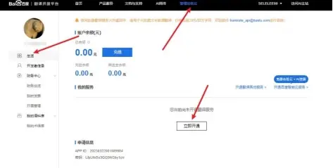 2、开通通用翻译服务。在管理控制台——总览——我的服务中点击立即开通,然后选择通用翻译,填写应用名称后提交申请即可。如下图所示: