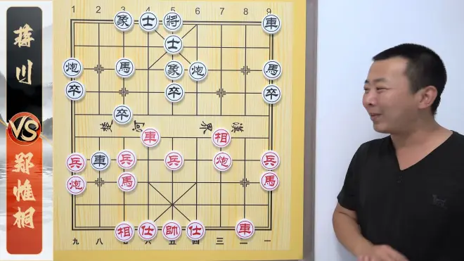 飞相对进卒,转单提马对两头蛇的开局。此布局相对平稳,转入中残局较量。小郑主动送兵,暗藏飞刀。蒋特识破了,不予理睬,出车正着,抓炮争先,红-10分。软件推荐走炮八进二,红优10分。区别并不明显。
