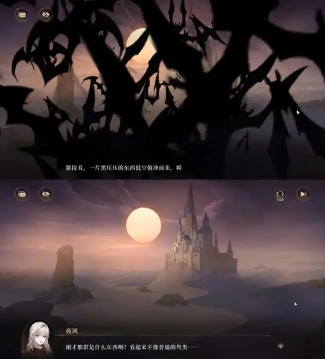 以第二章故事「永昼虚空」为例,故事围绕吸血鬼王国的新王、前任女王、前任女王的哥哥三人的爱恨纠葛展开。主角只是带着修复子世界的目的前来,尽管险些被新王杀害,还是让新王再次见到了前任女王的灵魂,弥补了他的遗憾,从而修复了这个世界。故事中的角色有各自的情感和命运,似乎和主角没有多少联系,这与女性向游戏一般重视情感代入的特点大相径庭。
