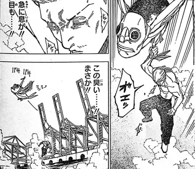 在秤金次等待着鹿紫云现身的时候,一股奇怪的味道出现,秤金次在闻到这种味道之后立马晕了过去,然后直接掉进了海里。根据官方放出的情报来看,这种奇怪的味道是鹿紫云通过电解水产生的氯气,是一种具有带有剧毒的气体。