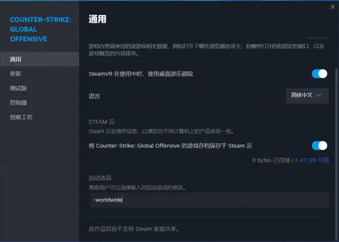 如果要玩CSGO国际服,启动选项填写“-worldwide”。