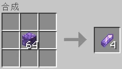 (水晶块 => 紫水晶 => 红石 => 绿宝石 => 钻石 + 锻造台 + 铁套 => 钻石套)