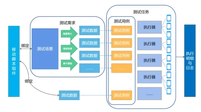 在执行前,我们将本次兼容性的需求及场景与我们之前设计的脚本组件进行绑定。此期间,我们可以将之前设计的不同脚本组成不同的串联关系生成更多的混合场景,场景与兼容性测试数据一同生成兼容性测试用例进行测试。我们也可以直接将脚本与兼容性测试数据进行绑定生成兼容性测试用例。