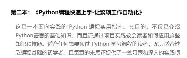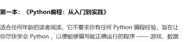 说句实在的,慌,可能是因为你自己没有完整的规划,其实就是不知道从何下手,七七八八乱学一通自然还是觉得无厘头。但今天,我要跟你讲,莫慌!恰好前几天从朋友那得到一套最强 “Python编程三剑客”:《Python编程:从入门到实践》+《Python编程快速上手-让繁琐工作自动化》+《Python极客项目编程-完整版》,翻阅之后,我大致地整理了一番(pdf),很硬核!领取方式:转发+私信“资料”即可拥有PDF啦