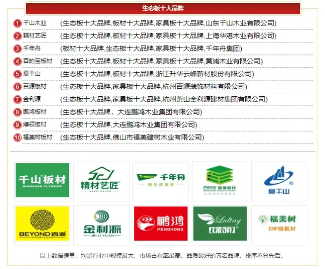 千山板材、精材艺匠板材、千年舟板材、百的宝板材、莫干山板材、百源板材、金利源板材、鹏鸿板材、绿领板材、福美树板材。