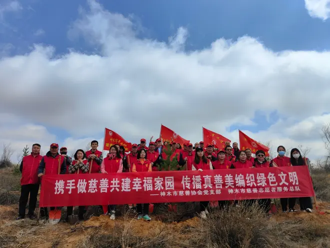 4月7日,神木市慈善协会组织神华路社区慈善志愿者服务队、神木市城市管理志愿者服务队、神木市青志协慈善志愿者服务队等在锦界镇沟掌村开展为“携手做慈善共建幸福家园,传播真善美编织绿色文明”主题的植树活动。