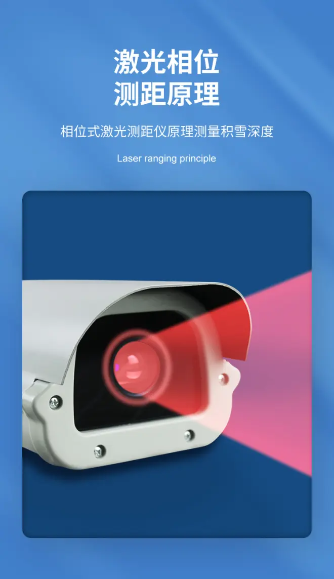 激光雪深传感器可在几秒钟内以毫米级的精度精确测得降雪厚度,最深可达5米,传感器发射对人眼安全的激光束。激光距离测量技术与超声测雪深的方法不同,它不受温度变化的影响。当测量过程中遇到降水和动物的影响时,则可通过测量时间的延伸和过滤短周期回波予以消除。它还可对回波信号强度的评估以区别积雪和草地。