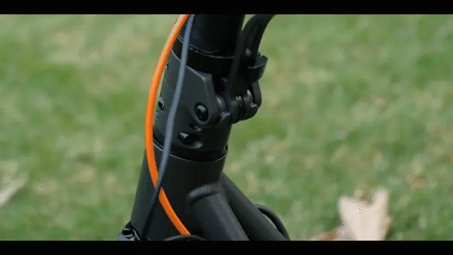整个组装的过程大约一分钟,首先折叠扳手将车把立管立起、扣好,锁住安全锁扣。两道防护,有效的保障了立管和车把的稳定性。