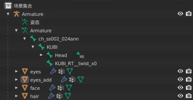 回到GUI,可以看到位于eyes名称左侧位置出现了小框:
