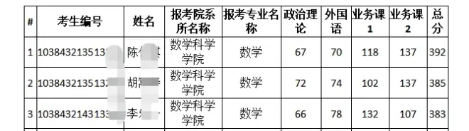 数学进入复试23人,录取14人,淘汰9人,复试最低分340,录取最低分341。