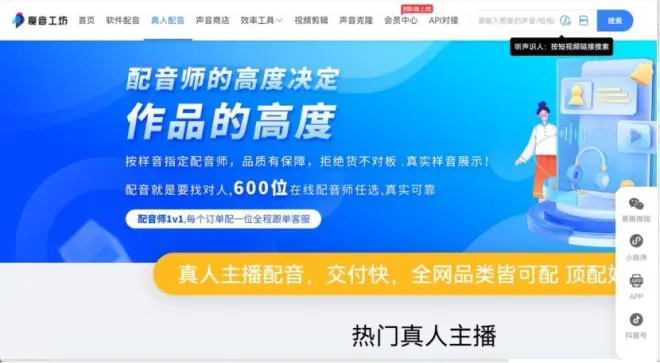 免费配音软件因为免费两个字也让这个市场的产品变得琳琅满目,下面就推荐一个简单的配音软件——魔音工坊。在经过市场的验证下,魔音工坊成为了大众所公认的影视作品御用平台,音质好的同时选择性更多。魔音工坊分为网页版,软件版和小程序版三种,其中网页版的功能最全。