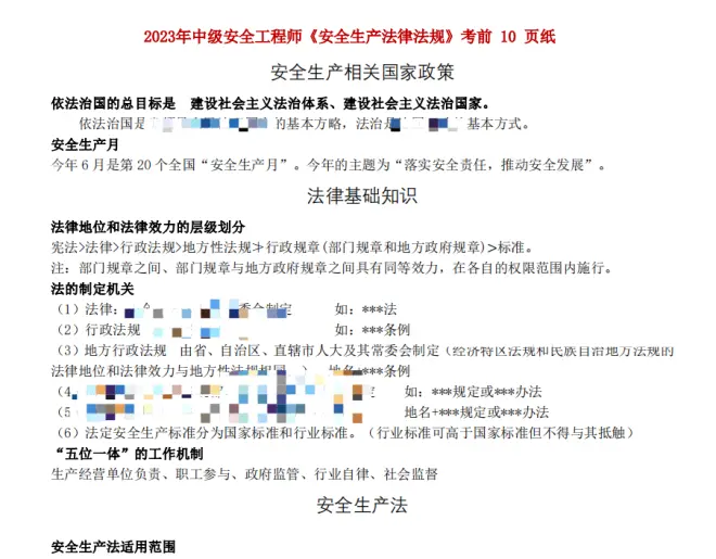 我对注安考前十页纸只有一句话评价——押考点押的真准。押的最准的就是注安技术,其次是法规、管理、实务。