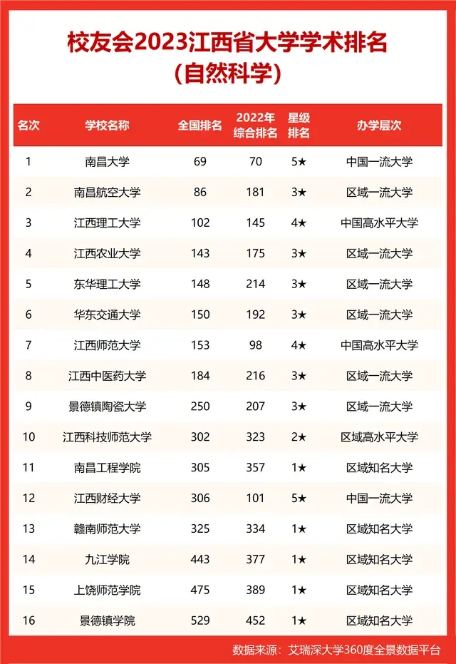 南昌大学、江西财经大学高居校友会2023江西省大学学术排名第一