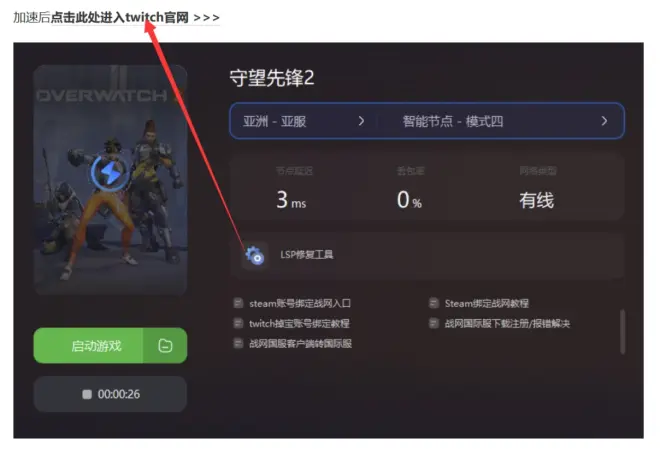 像这样可以免 费领取且参加难度较低的奖励,建议玩家们感兴趣就可以积极参与,以免活动过期之后后悔。由于twitch的官网存在严格的网络限制,玩家们无法在直连上网的状态下直接进入twitch,需要借助加速工具才能做到,小编在用的是海 豚,除开支持加速,页面还有教程可以查看: