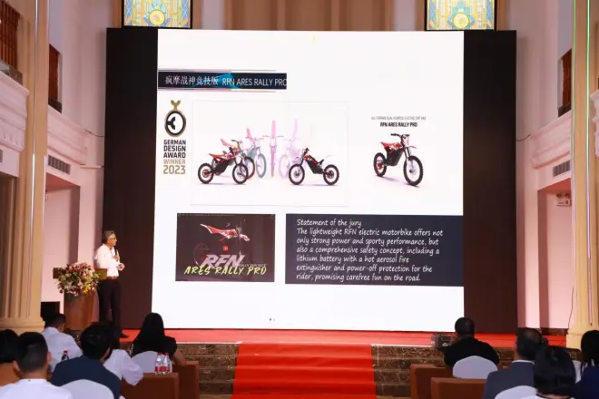 德国设计委员会大中华区首席代表、中国区总裁-王磊以《中国品牌在国际设计创新上的崛起》为主题,“随着越野摩托运动在全球范围内的推动,中国越野品牌也纷纷在国际视野中出现,在今年结束的中国进出口商品交易会—广交会上,阿波罗荣获了广交会设计创新(CF 奖)和德国国家设计品牌优胜奖,分享了中国品牌在国际设计创新上的精彩表现”,他认为未来将会有越来越多的中国品牌在国际设计创新上崛起,开始引领设计创新。