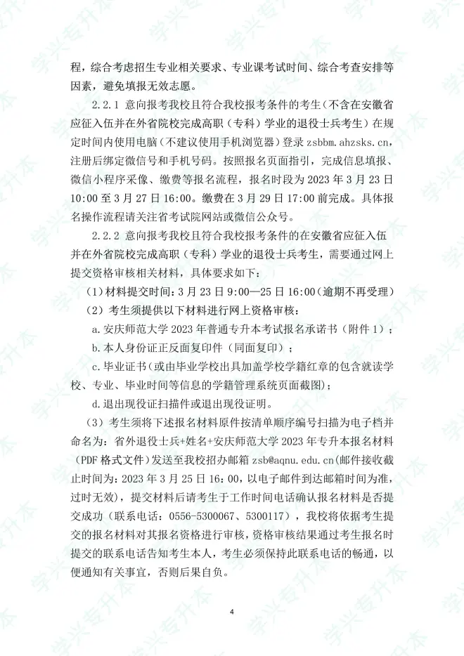 » 安庆师范大学2023 年普通高校专升本招生章程