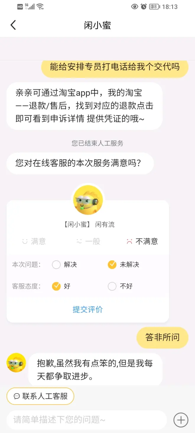 垃圾闲鱼的人工在线客服不好取得联系,直接立马打官方电话就行。