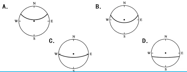 - 太阳直射点位于南半球时,全球各地(除极昼、极夜地区外)日出东南、日落西南