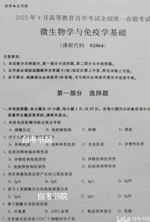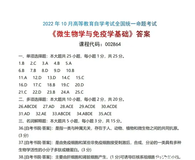2023年4月自考《02864微生物学与免疫学基础》真题的评论 (共