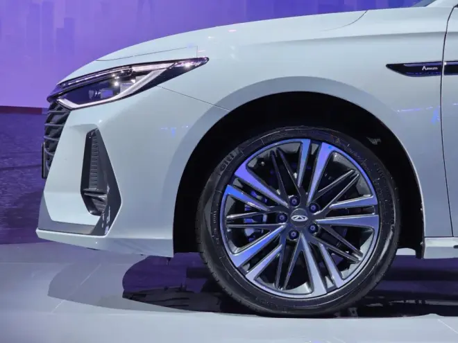 艾瑞泽8的2.0T有254马力,是个挺漂亮的数字,与之匹配的是7速双离合变速箱。我在发布会现场看到有搭载两款轮胎的实车,一款是佳通GitiComfort 225,一款是马牌UC6,尺寸均为225/45 R18,我猜,这两款轮胎谁都招架不住2.0T的艾瑞泽8全油门起步,除非它的双离合调得很佛系。我们也暂时不清楚这两款轮胎会根据什么逻辑来匹配具体车型。