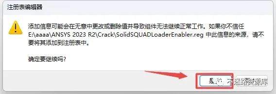 35.返回之前解压的“ANSYS 2023 R2”文件夹,双击打开“Crack”文件夹,双击”SolidSQUADLoaderEnabler.reg“注册表文件