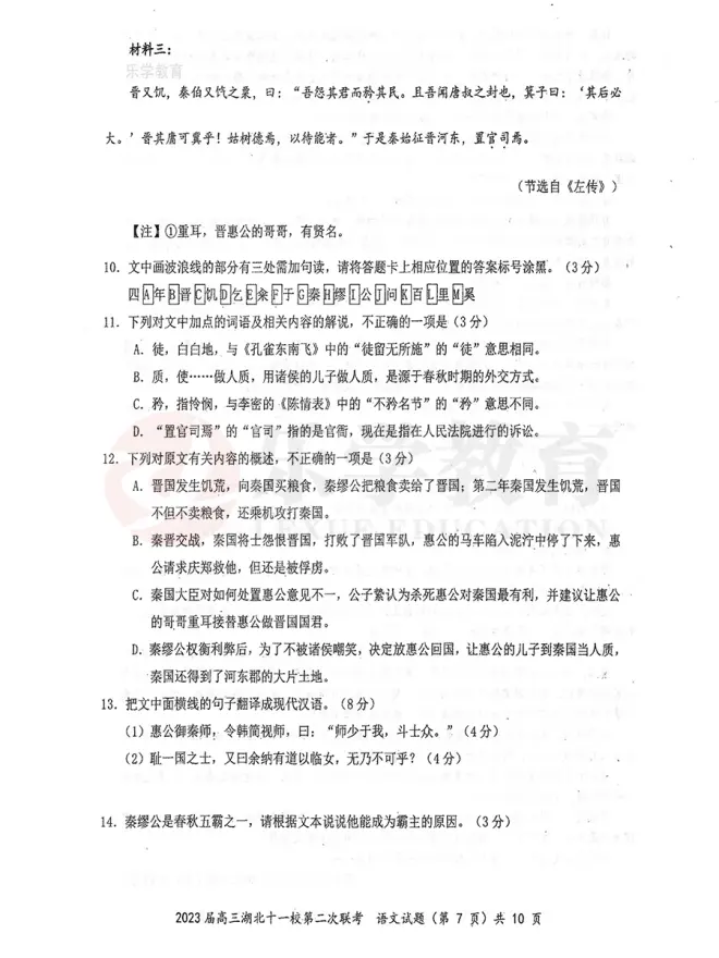 23届湖北高三十一校联考语文试卷及答案的评论 (共